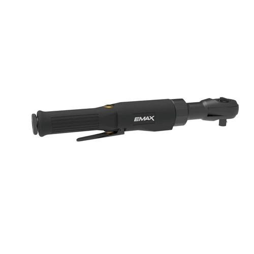 The EMAX EATRT05S1P 1/2 in. Heavy Duty Air Ratchet has all the performance features you need to get the job done at home, in the shop or garage, or even on the job-site. Perfect for tackling all tough mechanics jobs from tire rotation to removing or tightening lugs, or even frame or brake work. EMAX construction features a lightweight aluminum alloy body for exceptional comfort & control paired with a solid steel, front end housing heat-treated and chrome plated for rugged durability. EMAX’s ergonomic soft- touch four-finger trigger throttle provides user with smooth variable speed control. To ensure extended tool life, deliver rugged durability and performance, and generate max torque of 50 ft-lbs the EATRT05S1P is equipped with a robust dual gear drive and case hardened crankshaft, drive-bushing, yoke, anvil and pawl case components. A forward thrust deflector routes exhaust away from user.
