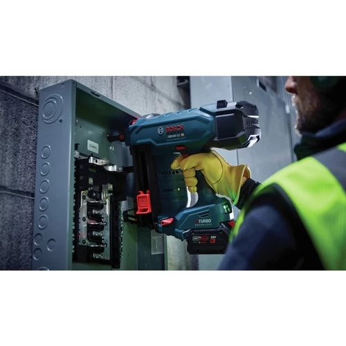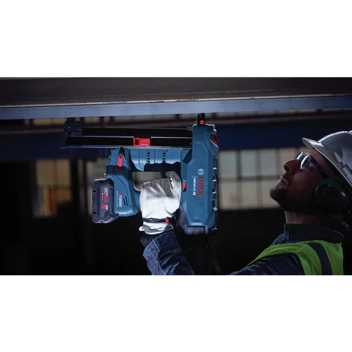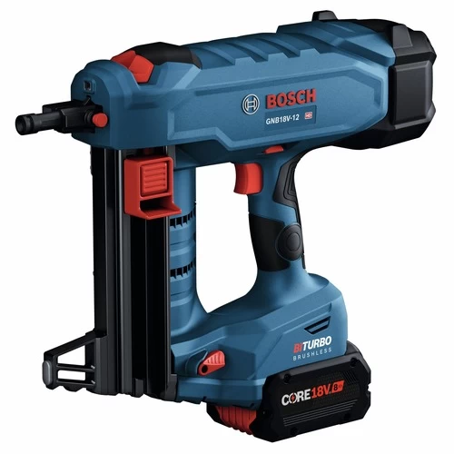 The Bosch GNB18V-12 PROFACTOR 18V Concrete Nailer runs on the PROFACTOR System, delivering the power needed for tackling heavy-duty interior steel framing or commercial drywalling jobs. The nailer has the capacity to sink up to 1.5 in. collated concrete nails into concrete. It is part of the PROFACTOR System, which pairs BITURBO Brushless Technology with a CORE18V High Power Battery. BITURBO Brushless Technology is a high-performance motor and drive-train system designed to deliver power comparable to high-demand corded tools. Using a single CORE18V battery, this Cordless nailer is an ideal replacement for gas-powered concrete nailers, because it eliminates the need for consumable gas cartridges. It includes an air-spring design, which provides fast, consistent nailing. It comes with a 22 Shot collated magazine (an extra-capacity magazine, which can hold up to 44 Collated pins, is sold separately), and a single-shot nosepiece. This nailer features an open system, allowing for competitive collate nails and single shots to be used. In addition, Bosch will supply an array of branded nails ranging 5/8 in. to 1-1/2 in. for concrete, and 1/2 in. to 3/4 in. for steel applications. It has an easy-to-use depth adjustment into the workpiece, and it has an on-tool user display, which helps manage tool performance, troubleshooting and battery life status. The CORE18V 8 Ah High Power Battery is compatible with Bosch 18V tools, is optimized for PROFACTOR tools and delivers 2X more runtime than the CORE18V GBA18V40 Advanced Power Battery.