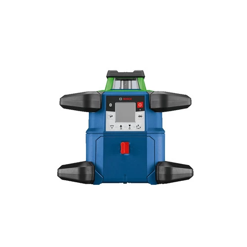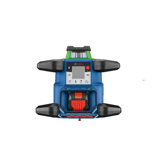 The 18V REVOLVE4000 Connected Self-Leveling Horizontal/Vertical Rotary Laser Kit with uCAL User-calibration delivers a comprehensive solution for precise outdoor and indoor leveling. It has a Dual Dial-In Slope feature that allows slope angle adjustment on both the X and Y axes, for grading applications. Its green-beam laser is up to 4X Brighter than standard red beams. This laser is designed to be powered by a 4 Ah or 8 Ah Bosch CORE 18V Battery (sold separately), providing extended runtime. It also features an alkaline adapter to use four (D) cells. The REVOLVE4000 is engineered with a cage overmold and an innovative handle design, and it is built to IP68 dust- and water protection standards. It features Bluetooth connectivity to a connected device, linking to the Bosch Leveling Remote App. This app controls on/off, Dual Dial-In Slope, and more. The rotary laser features uCAL, for user-calibration, taking the user step by step through the calibration process. This avoids tool down time and provides confidence that the laser is accurate. It delivers accuracy of up to ±1/16 in. at 100 ft. in Horizontal applications and ±1/8 in. at 100 ft. in Vertical mode, and a range of up to 4000 ft. with laser receiver. The laser features a vertical beam at 90 Degree Point for layout, squaring and plumb applications. The comprehensive kit includes a remote control, carrying case.