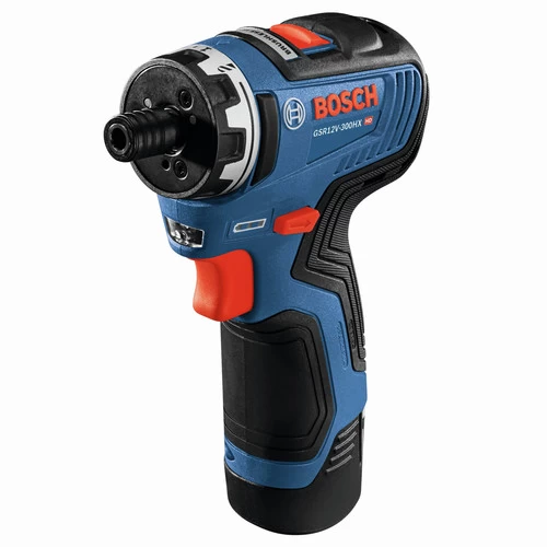 This 12V Max 2-Speed Hex 1/4 in. Screwdriver is a professional-grade tool that provides real power at an unreal size. The Bosch GSR12V-300HX features an efficient brushless motor that delivers 300 in-lbs. of torque, along with a max speed of 1750 RPM. With a head length of 5 in. and a weight of 1.7 lbs. (with included battery), this compact powerful screwdriver is an ideal tool for overhead work or tight spaces. The quick-change 1/4 in. Hex drive chuck provides enhanced bit grip and fast bit changes. It provides 2-Speed transmission and 20+1 Clutch Settings, for more precise screwdriving. It has an LED light to illuminate dark work areas. This kit features (2) 12V Max 2 Ah Lithium-Ion batteries and a charger.