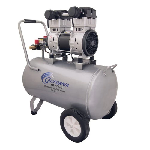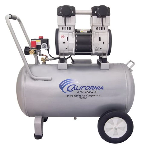 The California Air Tools 15020C 2 HP 15 Gallon Ultra Quiet Steel Tank Air Compressor are designed to be one of the quietest 2.0 HP air compressors in the industry having only 70 decibels of sound. The powerful motor operates at only 1,680 RPM creating less noise and less wear. The SP Series of Ultra Quiet air compressor motors have been designed to increase duty cycle and allow for longer continuous run times. The CAT-15020C Air Compressor has an oil-free dual piston pump designed to have a life cycle before wear of 3,000 plus hours compared to other comparable air compressors with life cycles of 100 hours or less. The large 15 Gallon Steel Air Tank with wheel kit makes it very easy to move around the jobsite, shop or garage.