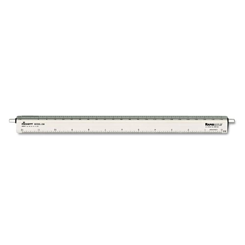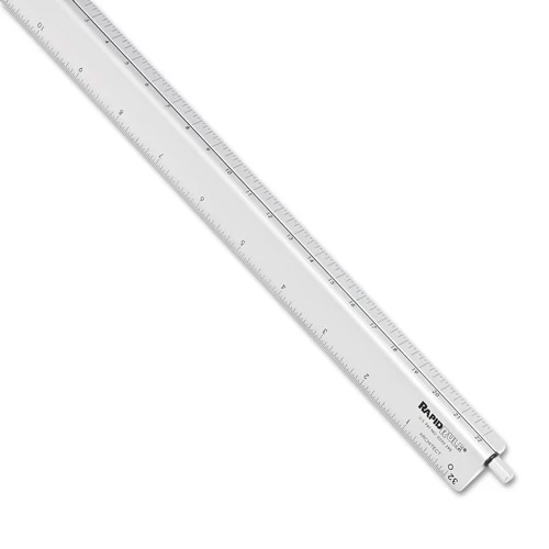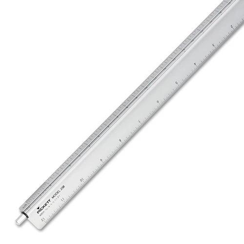 Versatile design lets architects work quickly with maximum efficiency. Change units quickly and easily by rotating dial at either end of scale – no need to move the scale from the work surface. 12 in. measuring length, exact calibrations; 1/32 in. scale. Manufactured of the highest quality aluminum. Adjusts to 1/16, 1/8, 1/4, 1/2, 1:1, 2:1 and 32.