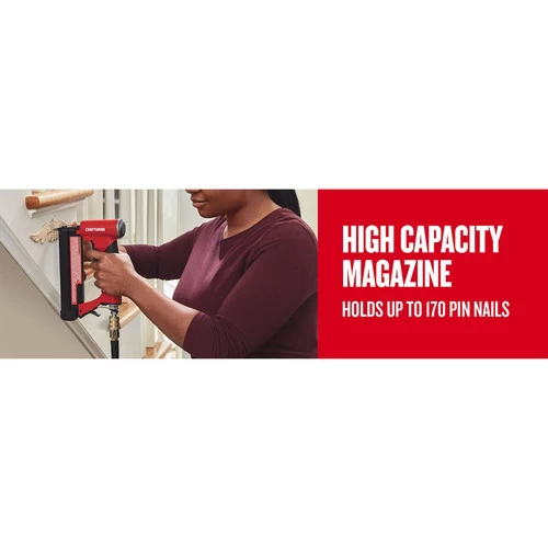 Cleanly drive headless or slight-head pins into delicate moldings and pre-finished crown with the CRAFTSMAN 23 Gauge Pin Nailer. This pin nailer reduces splitting during detailed woodworking, delivering the sensitivity and precision you need to get the job done. It propels 23 Gauge Pins from 1/2 in. to 1 in. Long and is the model choice for decorative molding.
