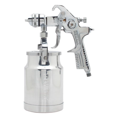 The Dewalt DWMT70779 Siphon Air Spray Gun with 1,000cc Cup features a conventional siphon design, which offers high volume, high pressure spray. This unit has a cam style 1,000cc cup, and can be converted to pressure feed as well, so it is ideal for multi-purpose applications.