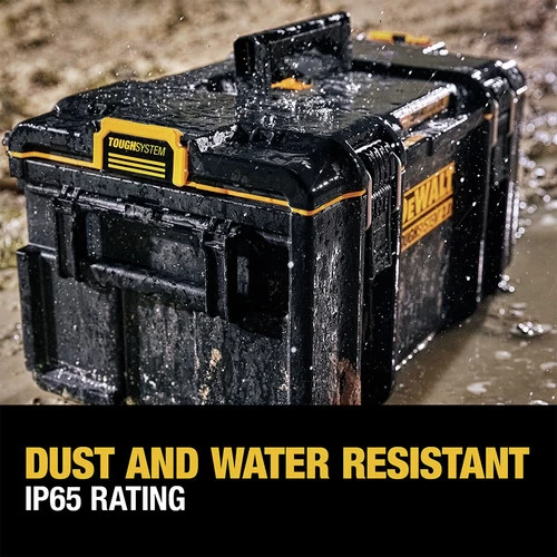 Get one-handed operation with the ToughSystem 2.0 Large Toolbox. It features patented auto-connect side latches, allowing for one hand operation. It also has 2-piece metal front latches for added durability when securing tools inside the box. This toolbox has 20% larger storage capacity when used with DWST08165 and DWST08450 as part of a tower. The ToughSystem 2.0 Toolbox is built for real jobsite conditions with high-impact protection. It is IP65 rated for dust and water resistance and has a 110 lbs. load capacity. The toolbox has a removable inner tray for optimal organization. The ToughSystem 2.0 Toolbox is backwards compatible with any ToughSystem product.