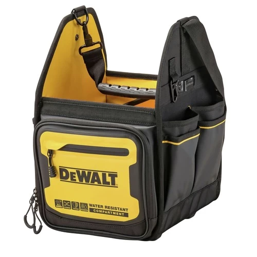 Store and transport tools with ease on demanding jobsites with 34 pockets and an IP54 water-resistant compartment. The DEWALT 11 in. Pro Electrician Tote features a durable construction designed to withstand harsh conditions and a zippered front pocket to help protect personal valuables.