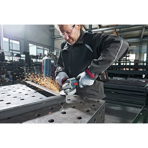 The Bosch GWS18V-45CN 18V EC Brushless Connected-Ready 4-1/2 in. Angle Grinder combines legendary Bosch grinder performance with connected-ready capability. The GWS18V-45C’s efficient EC Brushless motor delivers greater runtime, and it has the capacity to transfer up to 35% more power and up to 110% more runtime with an optional CORE18V battery (sold separately). Add advanced operational electronics, and the tool provides the best cordless grinding and metal-cutting experience available. When coupled with an optional Bosch GCY30-4 Bluetooth connectivity module, the connected-ready grinder supplies next-gen user control, using the free Bosch Toolbox app on a mobile phone. It has advanced electronics for enhanced user protection, such as KickBack Control to reduce the hazard of sudden tool reactions to binding situations, drop control to shut the grinder off after accidentally dropping the tool on the floor, restart protection to help prevent accidental start-up and soft-start technology to ease into cuts. It also features a burst-resistant wheel guard. This tool features a two-position Vibration Control side handle, ergonomic slim soft-grip design and a large spindle lock. It is a Tool Only; the battery and charger are sold separately.