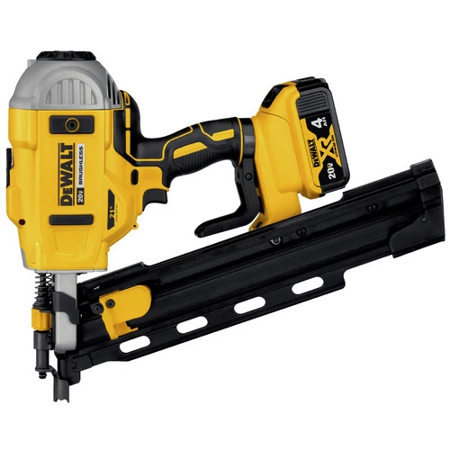 The 20V MAX 21-Degree Plastic Collated Cordless Framing Nailer delivers the performance demanded by pros to get the job done. The DCN21PL can drive a range of plastic collated fasteners up to 3-1/4 in. and 0.148 in. in diameter into a wide range of materials. Its compact shape, well-balanced design, and easy-to-operate features make it a highly productive tool capable of getting the job done quickly and efficiently. 100% battery power means you can show up and start working without wasting time setting up a compressor or spending money on costly fuel cell replacements.