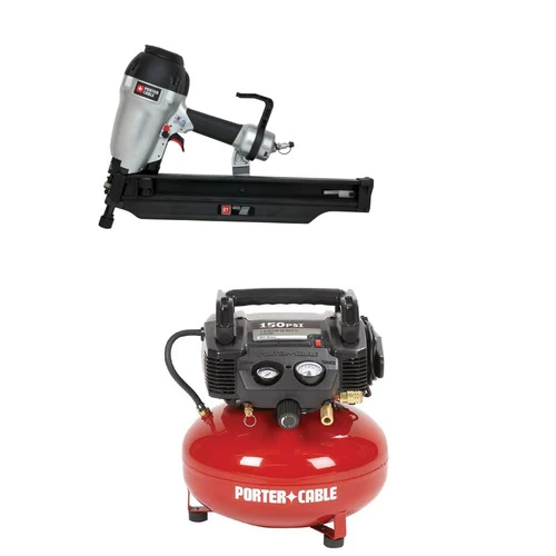 Factory Reconditioned Porter-Cable C2002R-FR350BR-BNDL 22 Degree 3-1/2 in. Full Round Head Framing Nailer with Air Compressor