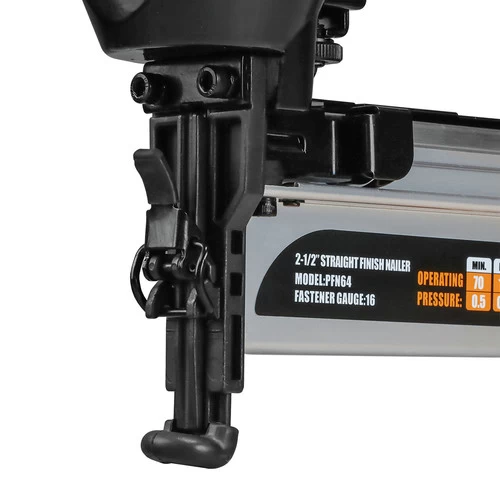 The Freeman PFN64 16-Gauge 2-1/2 in. Straight Finish Nailer is among the best on the market. This finish nailer comes standard with a tool free jam clearing nose to make quick work of a nail jam in the middle of the job. With the Freeman straight finish Nailer you are able to adjust the air exhaust, the depth of the drive and clear any jams without the use of any tools. Complete all your finishing jobs such as base molding, crown moldings and several cabinetry and furniture constructions with the best tool from Freeman.