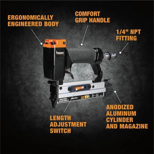The Freeman PP123 23-Gauge 1 in. Headless Micro Pinner is a woodworker’s dream come true. The headless micro pinner is extremely lightweight and easy to handle. It utilizes 1/2 – 1 in. pin nails and can be used for all types of hobby work, jewelry cases, detailed trim, and custom work. The Freeman pinner is extremely durable and precise featuring an anodized aluminum magazine and cylinder, Teflon O-rings, a pin size selector, and a dust cap to increase performance and durability. Freeman combines affordable pricing with high quality products for the ultimate value in a tool.