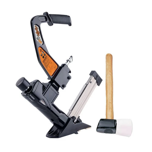 PFL618C 3-in-1 flooring nailer, shoots 15.5-Gauge 1-1/2 in. – 2 in. staples and 16-Gauge 1-1/2 – 2 in. T and L cleats (3-in-1) and a long reach fiberglass mallet with a padded grip