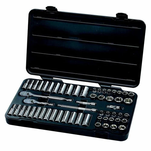 The GearWrench 80550 57-Piece 3/8 in. Drive 6-Point SAE/Metric Socket Set is designed to enhance productivity by offering greater access in difficult applications with the correct socket length. They feature an angled entry guide to grip the fastener quicker, and a full polish finish for easy cleaning and identification. In addition to offering access, this line of sockets includes the features that you have come to expect from GearWrench and deliver on the brand promise of greater speed, strength and access.