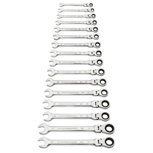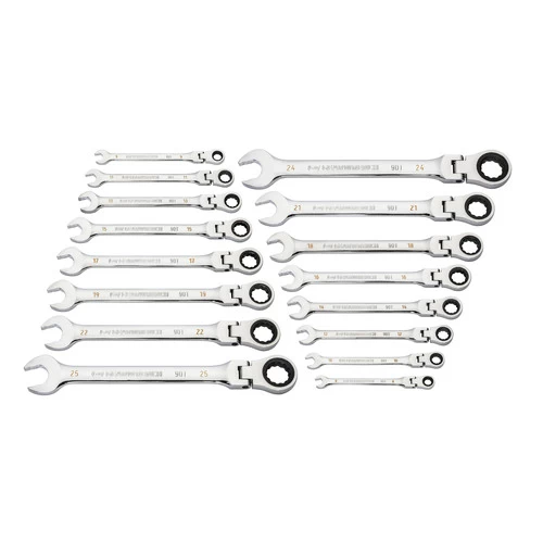 GearWrench 86728 16-Piece 90-Tooth 12 Point Metric Flex Head Combination Ratcheting Wrench Set