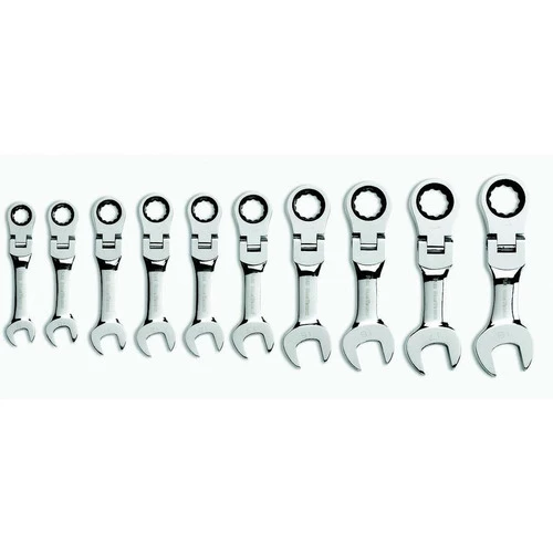 GearWrench 9550 10-Piece 12-Point Metric Stubby Flex Combo Ratcheting Wrench Set