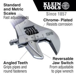 Klein Tools D86930 10 In. Reversible Jaw/Adjustable Pipe Wrench