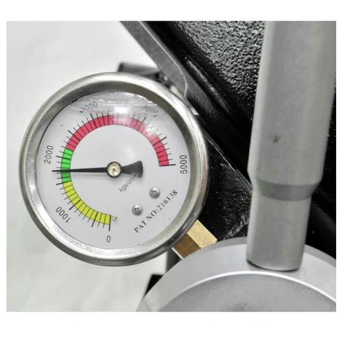 Large handwheel with blade tensioning gauge acurately measures blade pressure