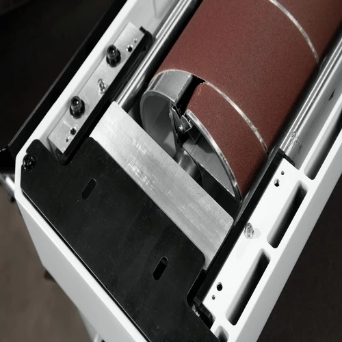 The newly re-designed 2244 Oscillating drum sander from jet has an exclusive oscillating feature that helps create the best sanding finish with the least amount of dust. When in the oscillating mode, the sanding drum head oscillates from left to right which lowers heat build-up on the sanding belt, reducing loading, and burning. The innovative tool-less parallelism system keeps adjustments simple. The worktable is easily positioned by a turn of the parallelism dial. The Sandsmart conveyor system continuously monitors the load on the drum motor to prevent an overload situation. The mirrored design of the dust hood optimizes dust collection preventing chips and dust from getting between your work-piece and the finish. The jet 2244 Oscillating drum sander delivers everything you need for an effortless finish.