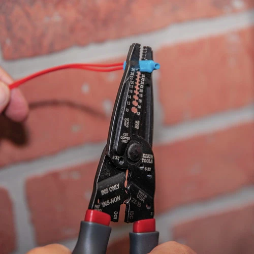 With Klein Tools’ Wire Stripper / Crimper / Cutter Multi Tool, you can strip, cut, twist, shear and crimp with one tool. Features four dedicated crimpers for B connectors, insulated and non-insulated terminals plus Scotchlok IDC connectors. This versatile tool twists, loops and strips 10-26 AWG solid and 12-28 AWG stranded wires and cleanly shears 6-32 and 8-32 screws. The reinforced head reduces flex keeping stripping holes sharp. The design is optimized for ideal leverage when stripping and crimping.