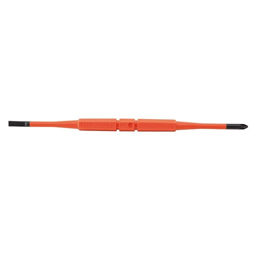 Klein Tools’ Flip-Blade Insulated Screwdriver is two drivers in one tool. The auto-eject mechanism works with just a twist, allowing you to flip the #1 Phillips- to the 3/16 in. Slotted-end of the blade simply and easily. A bright orange coating of insulation protects from electrical shock, as well as being flame and impact resistant. Klein insulated tools exceed the ASTM F1505 standards for insulated tools, and are clearly marked with the official 1000V rating symbol.