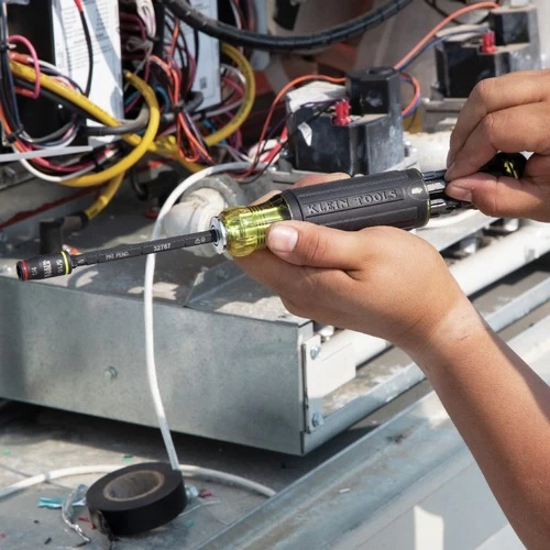 The 14-in-1 HVAC Adjustable-Length Screwdriver features the most commonly used HVAC driver bits and nut drivers in one tool. Use it as a screwdriver or as an impact driver attachment. The flip socket on the end of the blade has three positions for multiple functions. Great for tight spaces, impact driving, and long-reach applications.