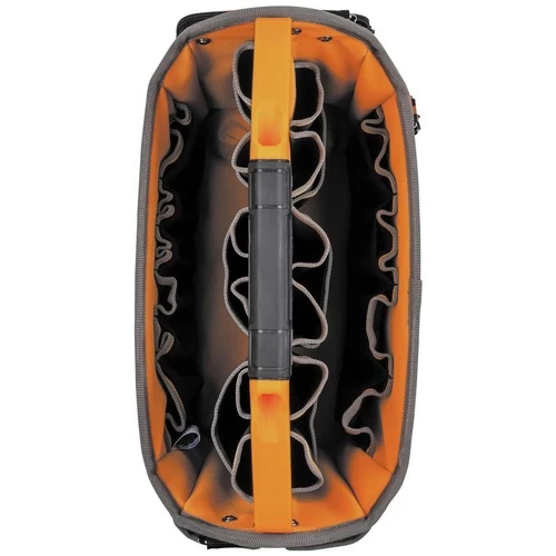 Features a headlamp bracket that holds a Klein Tools Headlamp to illuminate either the interior of the tool bag or the external surroundings (Headlamp sold separately, Cat. Nos. 56062, 56049)