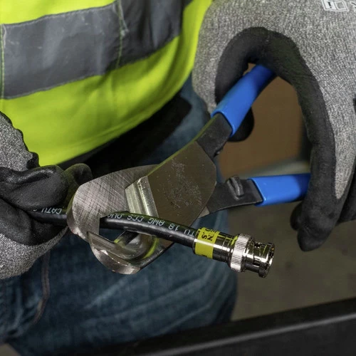 The Coaxial Cable Cutter cuts up to 1 in. (25 mm) aluminum and copper coaxial cable. This tough tool offers precision, one-hand shearing action without compression or frayed ends. Cable-gripping jaws quickly score jacket and insulation and easily cut through copper inner conductor. Plus, the compact, lightweight design fits perfectly in any professional’s tool pouch.