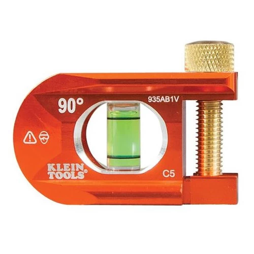 Klein’s Accu-Bend 1-Vial Level helps ensure precise 90-degree bends and eliminate dog legs. The thumb screw attaches the level to conduit to help eliminate dog legs when bending.The large high-visibility vial is easy-to-read while the high-visibility orange is easy to spot in a sea of conduit. Built-in V-Groove easily fits the contour of conduit and pipe.