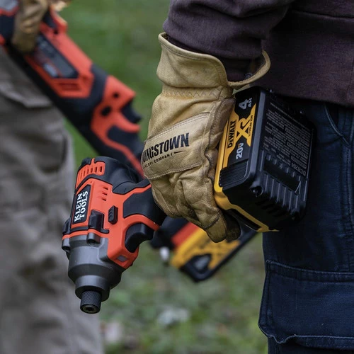 Klein’s Compact Impact Driver for professional impact fastening and drilling applications offers 210 ft.-lbs. of max torque to get the job done fast. Engineered and designed by Klein Tools in the USA, the impact function makes this tool particularly useful for driving fasteners in wood, metal and concrete. The variable speed trigger provides better control. Users can change driving bits quickly with the 1/4 in. quick connect chuck. Powered by 20V lithium-ion DeWALT batteries (sold separately).