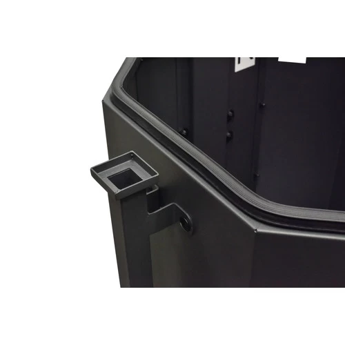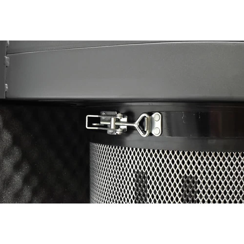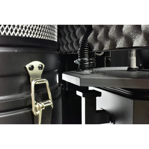 Swing-away doors sports acoustic foam on the inside to lower noise level