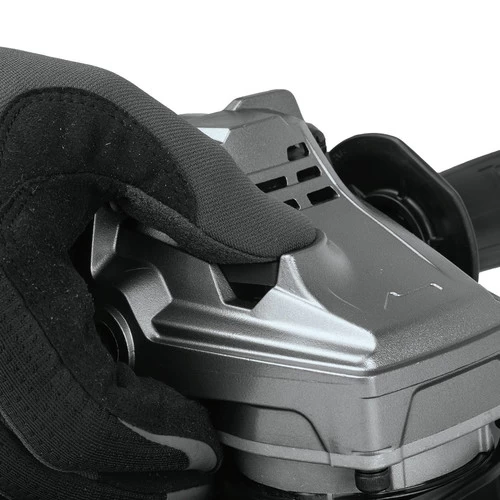 A paddle switch with no lock-on is convenient. A quick guard rotation provides tool-less adjustments for increased productivity. Anti-restart protection is engineered to prevent motor start-up when the battery is inserted while the switch is locked on. A soft start suppresses start-up reaction and provides smooth start-ups.