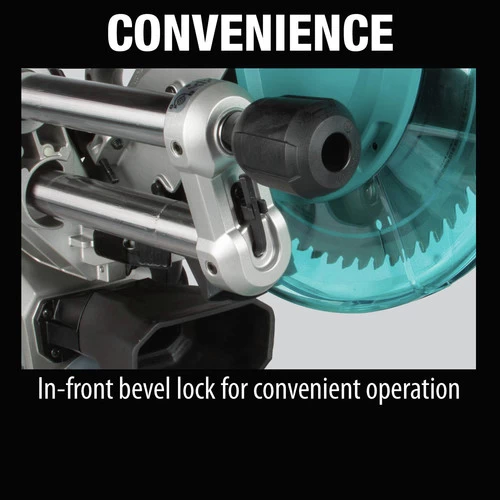 The direct drive gearbox with soft start is a key point of difference. Direct drive enables smoother start-ups and consistent, constant power with no belts to slip or replace. The electric brake provides added convenience. Additional features include a high-quality 60 Tooth carbide-tipped blade, built-in laser that indicates the line-of-cut, and improved dust collection capability for use with a bag (included) or vacuum (sold separately). It also has a large-sized aluminum base that improves the stability of cutting stock for more efficient cutting.