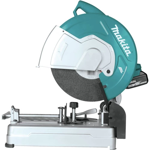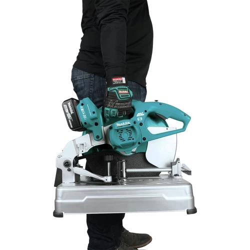 The Makita 18V X2 LXT (36V) Brushless 14 in. Cut-Off Saw is a cordless metal-cutting solution ideal for light gauge metals including stud and strut, pipe, all thread, conduit, tubing, rebar, and more. The BL Brushless Motor eliminates carbon brushes so it runs cooler and more efficiently for longer life. The Saw is powered by two 18V LXT batteries for maximum cordless performance, and delivers 3,800 RPM for the most demanding metal cutting applications. It will cut up to 5 in. round and 4 in. x 7-5/8 in. rectangular tubing. It also features a “tool-less” fence and vise controls for increased productivity, and a large spark guard engineered to capture and deflect debris away from the surrounding area. Additional features include an electric break, a large ergonomic handle and two-stage lock-off power button.