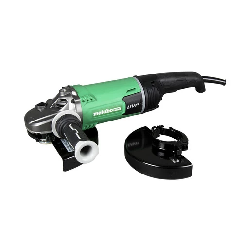 The 15 Amp 7 in./9 in. Corded Disc Grinder offers a great value for those in need of a large angle grinder. An all new compact and lightweight motor design delivers more power than ever before, and the featured Metabo HPT Overload Protection System ensures operator safety. The 15 Amp 7 in./9 in. Corded Disc Grinder utilizes a full User Vibration Protection (UVP) system with an anti-vibration side handle, two tool-less wheel guards, and a Lock-On/Off trigger to prevent additional fatigue that professionals may experience during labor intensive work.