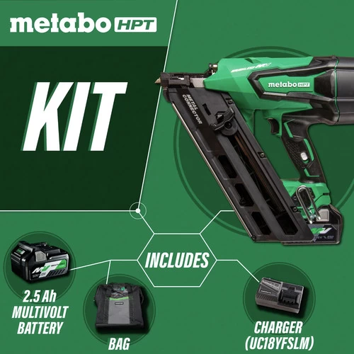 Metabo HPT NR3665DAM MultiVolt 36V Brushless Lithium-Ion Cordless Metal Connector Nailer Kit (2.5 Ah)