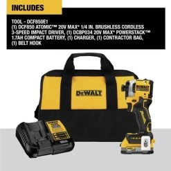 Dewalt DCF850E1 20V MAX ATOMIC Brushless Lithium-Ion Cordless 1/4 In. Impact Driver Kit (1.7 Ah)