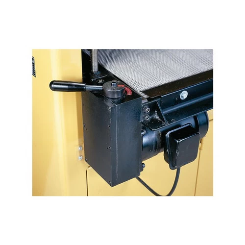 Finally, a production class dual drum sander that is loaded with features. The DDS-225 Dual Drum Sander features a 5 HP motor for plenty of power. The dual steel drums have a hard durometer rubber coating to assure a flat, mar-free finish. Independently adjustable rear drum makes fine tuning easy. A heavy cast-iron table incorporates four solid jackscrews with chain drive timing to keep it level at all times. The heavy-duty poly conveyor belt provides a positive grip on the stock. The 1/4 HP feed motor is coupled to a two-speed forward/reverse gearbox that will sand 8 and 10 surface ft. per minute. The heavy steel cabinet provides years of vibration-free sanding with plenty of storage space underneath.