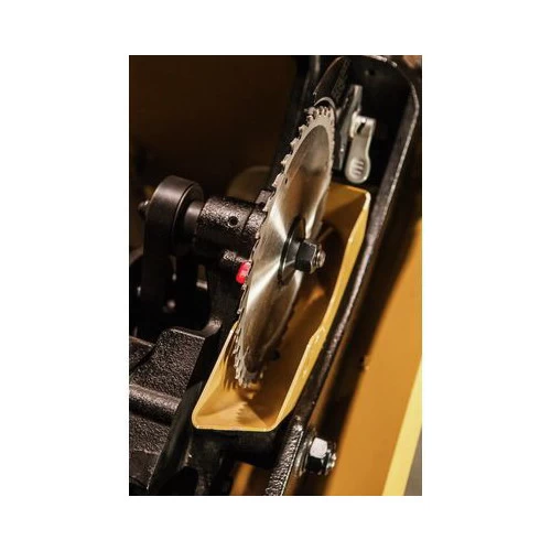 The award winning PM2000 table saw sets a new standard for innovation with an array of patented features and massive body design. The cast iron tables are oversized, and the newly designed arbor lock lever is accessible from above the table top to eliminate the need for dual arbor wrenches. The quick-release riving knife design helps reduce the chance of kickback. The blade tilt scale features an integrated digital read out as well as adjustable angle indicators for repetitive bevel cuts. The newly designed integrated retractable hydraulic caster system mobilizes your table saw much higher than the previous model to assist when moving over thresholds. A wide stance, heavy-duty box trunnion and concave teeth on the trunnion gears promote easier raising and tilting of saw blade. Poly-V drive belt system results in quieter, more efficient power transfer from the motor to the arbor with virtually no vibration and less heat build-up. Improved built-in dust collection port with convenient access to the inside of the saw cabinet for simple clean-up. The saw has a proprietary safety switch with magnetic interlock and the stop button can be knee activated.