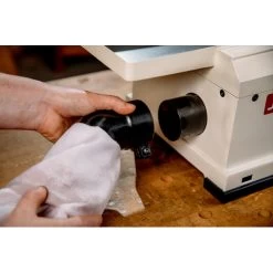 This heavy-duty 4 in. Overarm is designed to provide operator protection while removing table-top dust in both standard and non-through cuts. The transparent blade cover is engineered to lift easily for quick blade access, and the rigid steel overarm swings smoothly away and back into operating position. The wide pipe allows for high air volume collection.