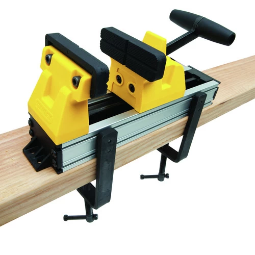 The Stanley STHT83179 Quick Vise is ideal for DIY and hobbyist projects. Rather than a traditional hand crank, the quick vise utilizes a slide for quick, easy positioning and a lever for tightening. Two built in screw threads securely hold the vise to work surfaces and provide easy repositioning. A 4.5 in. jaw slides to open and close quickly and weighing only 3.5 lbs., the quick vise is also easy to transport. Removable non-marring pads cover the heavy-duty steel jaws to help prevent damage to the work surface. This vise is great for cutting, gluing, clamping, and carving.