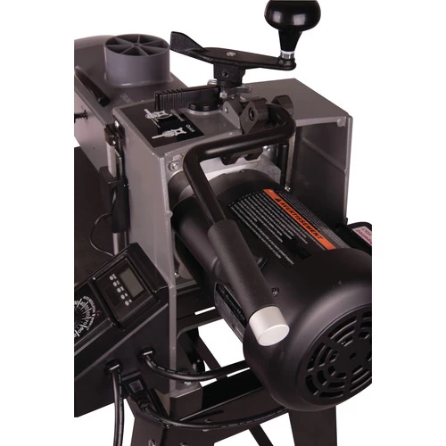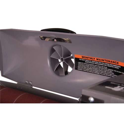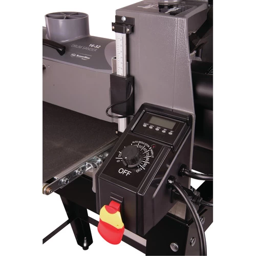 Includes build-in Digital Read Out which helps maintain consistent thicknesses to increase accuracy and quality. A newly designed Turbo Vented Dust Port increases CFM air-flow to dust collectors by 15%. Simple alignment feature – just one nut adjusts the conveyor to parallel the sanding head, making aligning the conveyor to the sanding head fast and easy.