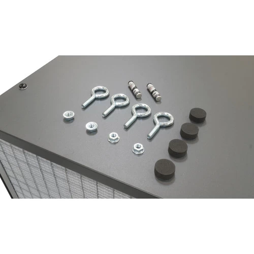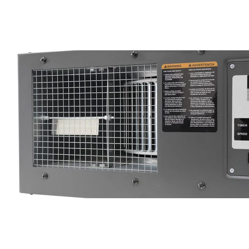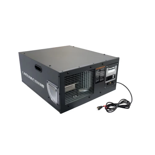 The Air Filtration Unit is designed to recycle all of the air in a 20 ft. x 20 ft. x 8 ft. space up to 22 times per hour at its highest speed. It includes one (1) outer washable electrostatic filter with an inner filter that captures all particles larger than 1 micron ensuring clean air output.